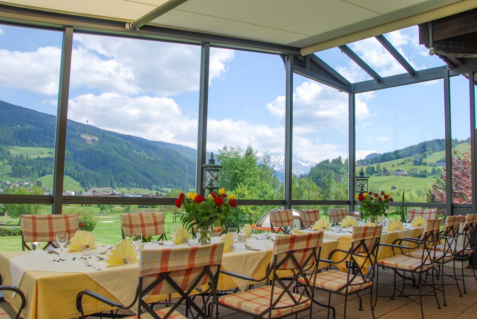Abends verwöhnt Sie unser Küchen- & Serviceteam auf der Panoramaterrasse mit Blick über den Golfplatz, auf die historische Stadt und die umliegende Bergwelt. 33 % Greenfee Ermäßigung am Hausplatz GC Radstadt und 20% auf den Nachbarplätzen.