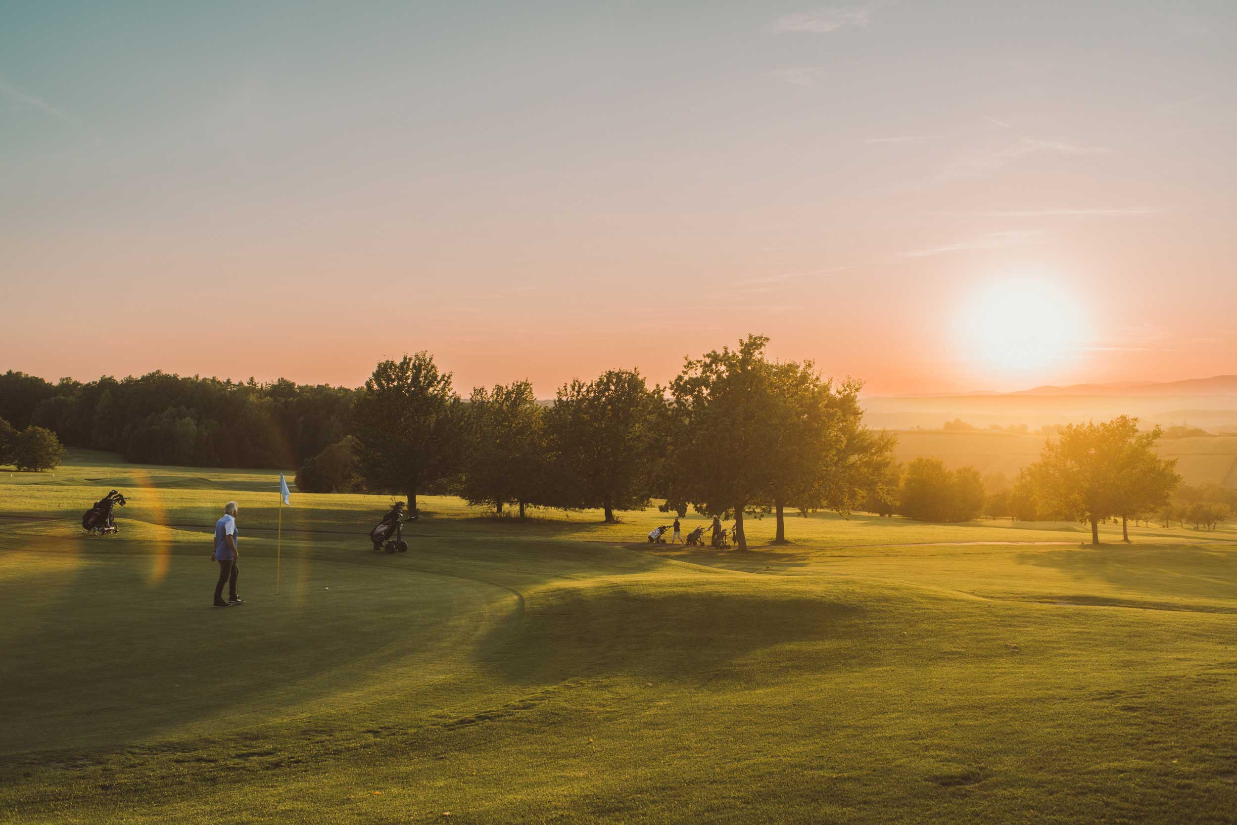 Was viele tun, wenn sie alles dürfen und nichts müssen? Putten, Chippen, Pitchen. Dafür ist der bestens gepflegte hauseigene 27-Loch Golfplatz „the place to be“. Um sich dem umfangreichen Golfgenuss hinzugeben, braucht es keine lange Planung, denn das 125 Hektar große Areal befindet sich praktisch nur einen Putt vom Hotel entfernt. Und bietet Anfängern bis Profis ideale Bedingungen inklusive Clubhaus und großer Driving Range. Von Sonnenaufgang bis Sonnenuntergang, nahezu ganzjährig – schließlich wartet das Südburgenland mit einem besonders warmen, gemäßigten Klima auf. Bis zu 300 Sonnentage jährlich inklusive!